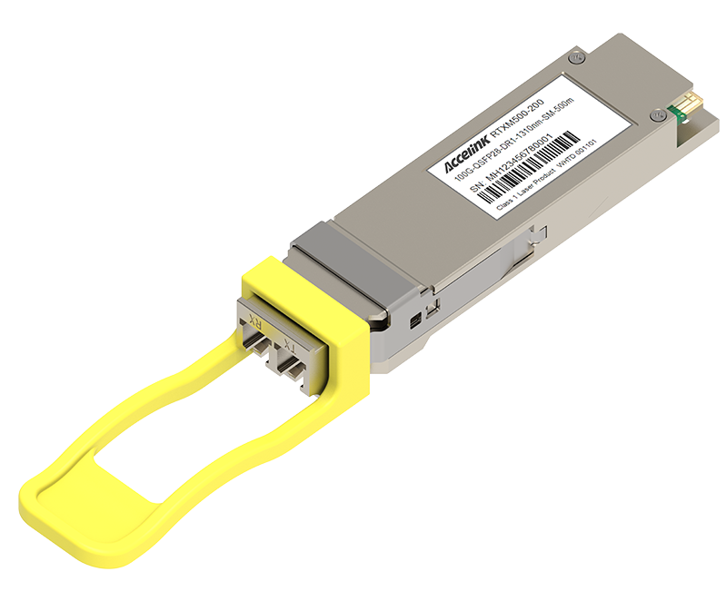 RTXM500-210 100G QSFP28 FR1 transceiver modules are designed for use in 100 Gigabit Ethernet links on up to 2km of single mode fiber. They are compliant with the QSFP MSA, IEEE 802.3cu and 100G lamada MSA.The optical transceiver is RoHS compliant.