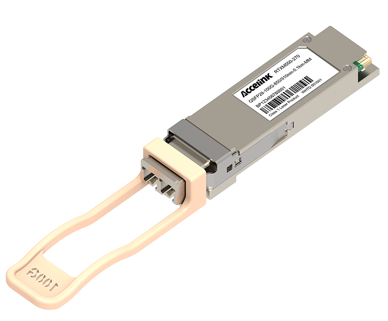 RTXM420-431 100G QSFP28 CWDM4 transceiver modules are designed for use in 100 Gigabit Ethernet links on up to 2km of single mode fiber. They are compliant with the QSFP MSA and CWDM4 MSA.The optical transceiver is RoHS compliant.